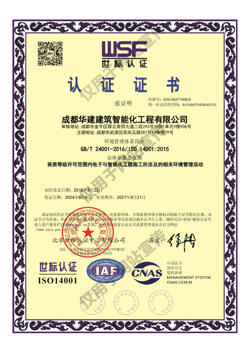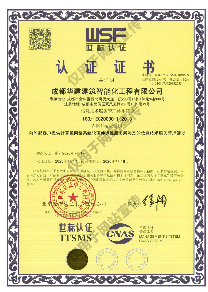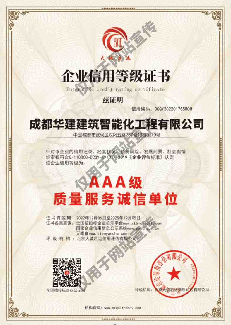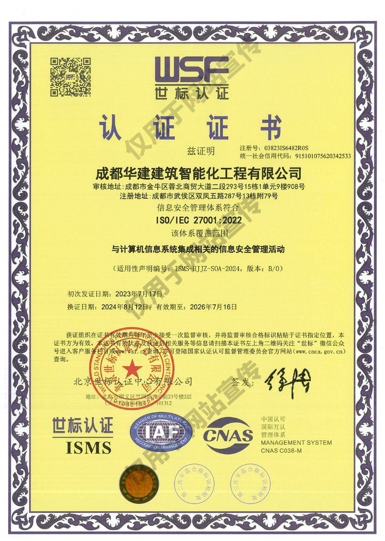 成都華建建筑智能化工程有限公司,19年專(zhuān)注弱電智能化工程、消防工程、建筑機(jī)電安裝工程的專(zhuān)業(yè)公司,具備電子與智能化工程、消防設(shè)施工程、建筑機(jī)電安裝、建筑裝修裝飾、建筑智能化設(shè)計(jì)等相關(guān)30余項(xiàng)資質(zhì)及證書(shū)。設(shè)計(jì)、施工和維保一站式服務(wù),多行業(yè)中大型成功交付案例。…